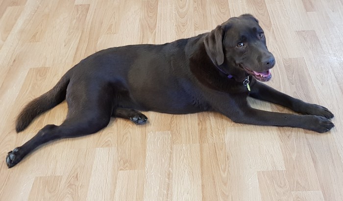 Ruby is a beautiful 5 year old Chocolate Labrador. Ruby has a sweet and gentle disposition. Ruby loves attention and company. Ruby is our Laughing Dog of the Day.