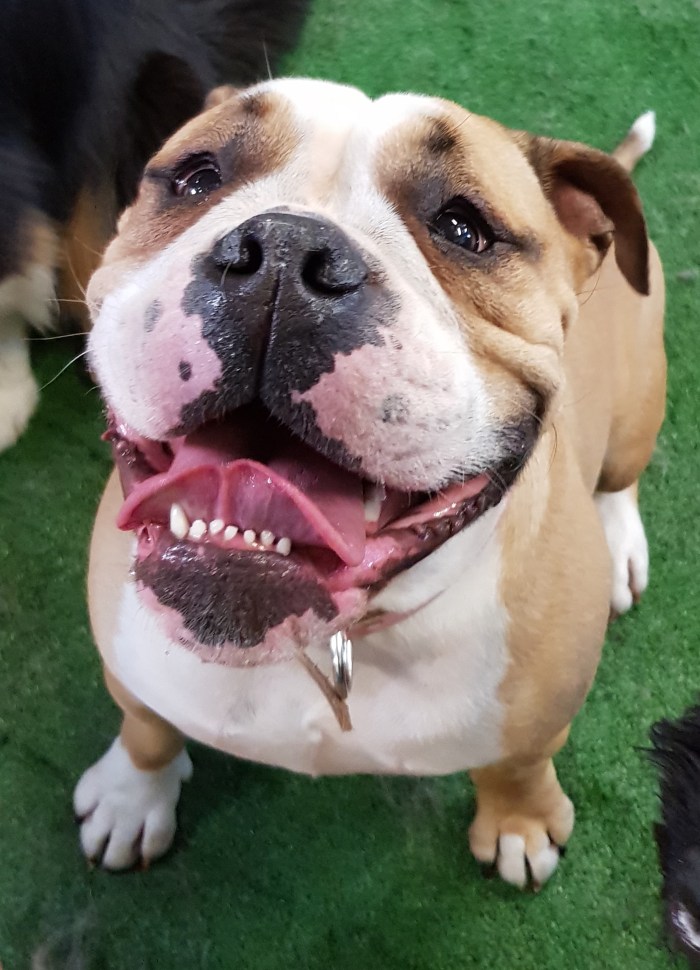 Maggie is a sweet 3 year old Australian Bulldog – in fact her birthday is today! πππ Maggie has the cutest wiggly bottom always letting you know she is happy. Maggie loves ball games and most especially tug o war! Maggie is our Laughing Dog of the Day!