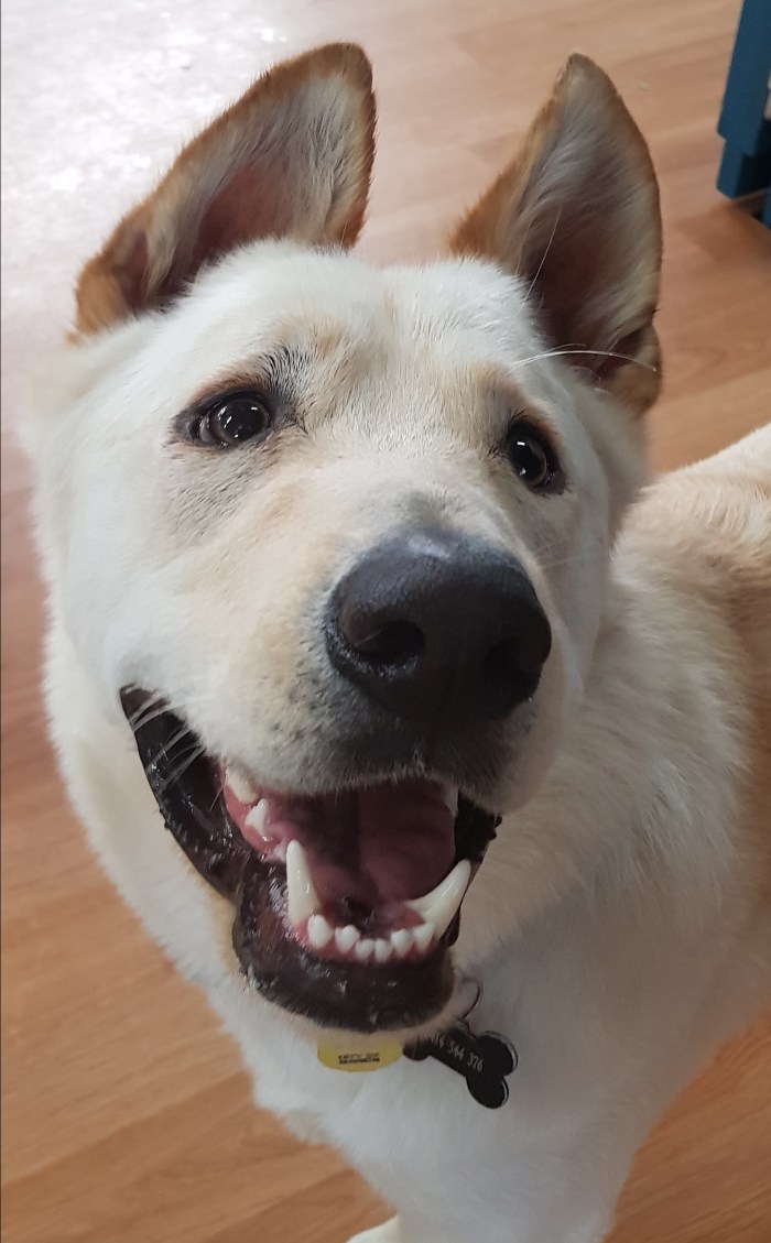 Jango is a fantastic and friendly boy – he’s a Siberian Husky x Labrador or Huskador if you like! Jango loves socialising with other dogs and will play all day! Jango is our Laughing Dog of the Day!