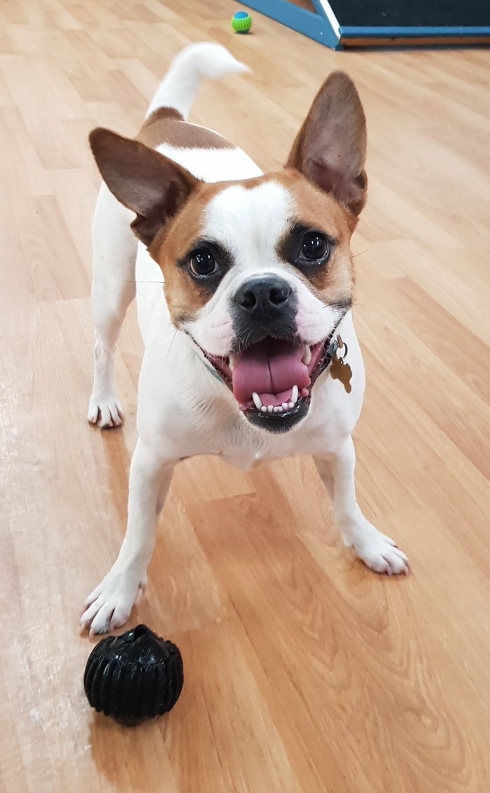 Brie is a bubbly and bright little personality who loves her weekly visits to day care. Brie is a French Bulldog x Pug and her favourite playmates are Boxers! Brie’s favourite games are chasey and tuggy. Brie is our Laughing Dog of the Day!