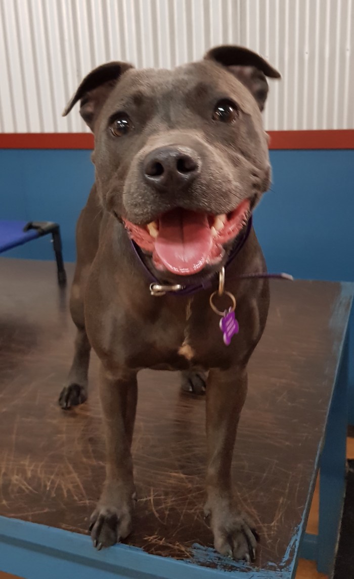 Opal is a 1 year old English Staffordshire Terrier who is quite the character and full of fun. Opal loves playing chasey and making new friends. Opal is our Laughing Dog of the Day!