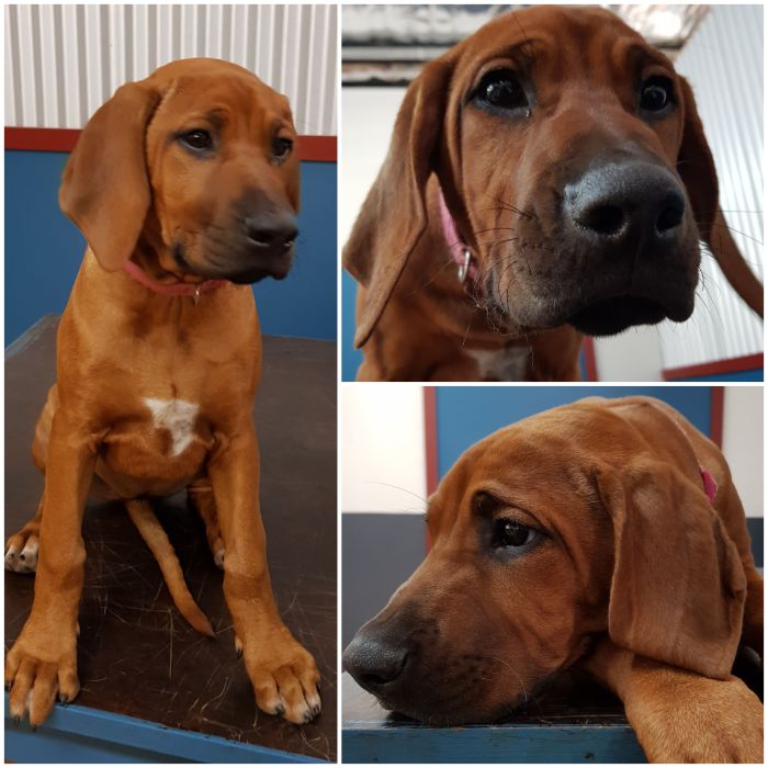 Peaches is a 3.5 month old Rhodesian Ridgeback Puppy who is simply divine. Peaches loves puppy play – chasey and wrestles, but come sleepy time this girl wants to cuddle! Peaches is our Laughing Dog of the Day!