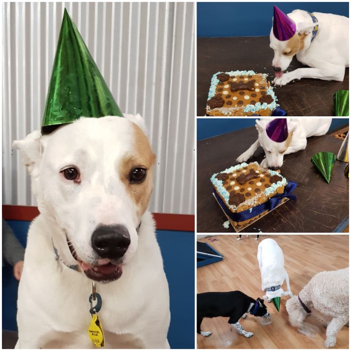 Today we celebrated Olaf’s 2nd Birthday with everyone enjoying a delicious doggy cake! Olaf looked great in his party hat and was so happy to get to eat his cake. Happy Birthday Olaf!