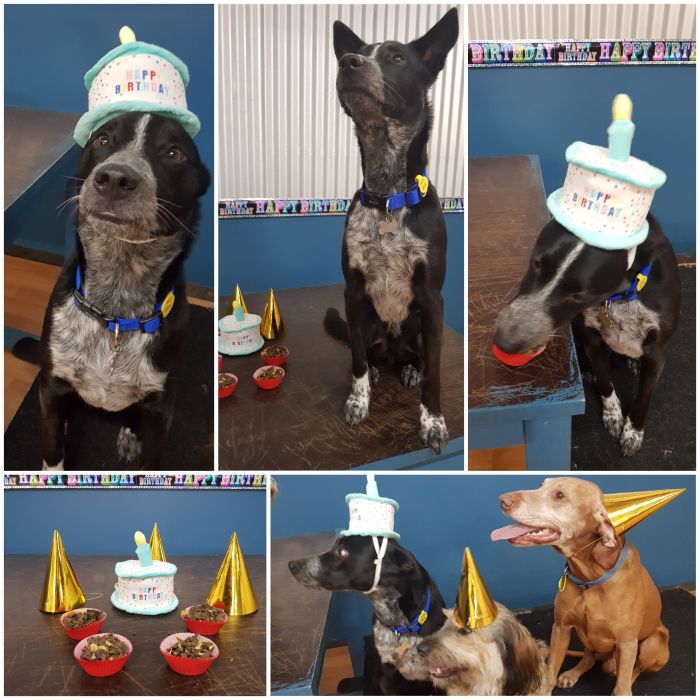 Rocky joined us today to celebrate his 2nd Birthday! Rocky and his invited guests donned party hats and devoured pupcakes and a great time was had by all. Rocky is our Laughing Dog of the Day!