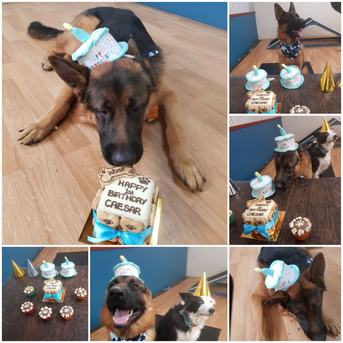Caesar German Shepherd turned 1 today and we celebrated with a pawesome birthday party! Caesar enjoyed his celebration with his furiends and looked very cute in his birthday hat! Happy Birthday Caesar!