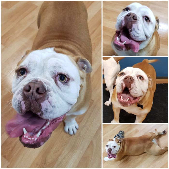 Bowser is a 1 year old Australian Bulldog. Bowser has a great enthusiasm for life and is always ready to play! Bowser is our Laughing Dog of the Day!