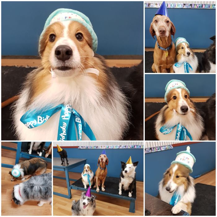 We were thrilled today to end the week with a puppy pawty for Freddie the Shetland Sheepdog! Freddie looked absolutely delightful in his birthday hat and bow. There was plenty of pawty fun – and everyone loved their pupcakes! Happy 6th Birthday Freddie!