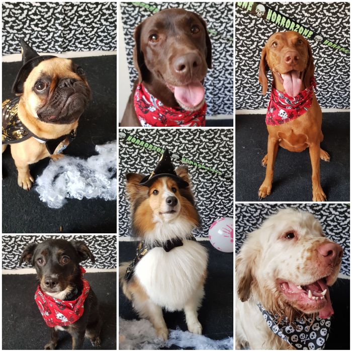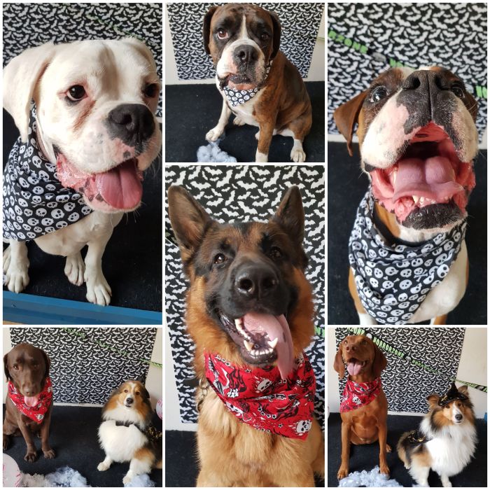 We enjoyed a Spooktacular day at day care today! Halloween is a great excuse for a fun day of dress ups. All the pups went home with a treat bag and a Spooktacular bandana. Happy Halloween everyone!