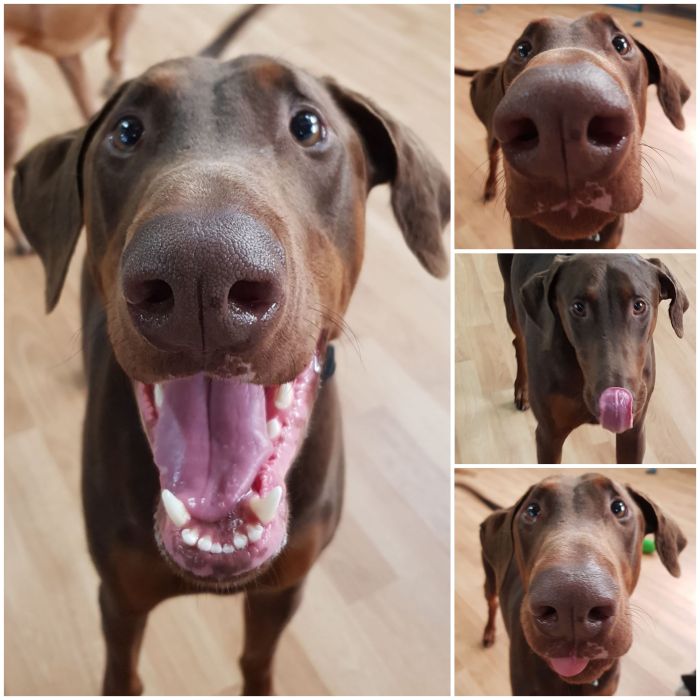 Cooper is a happy fun loving Doberman, who just loves to play! Cooper’s favourite game is tuggy, but this social boy is content playing any game! Cooper is our Laughing Dog of the Day!