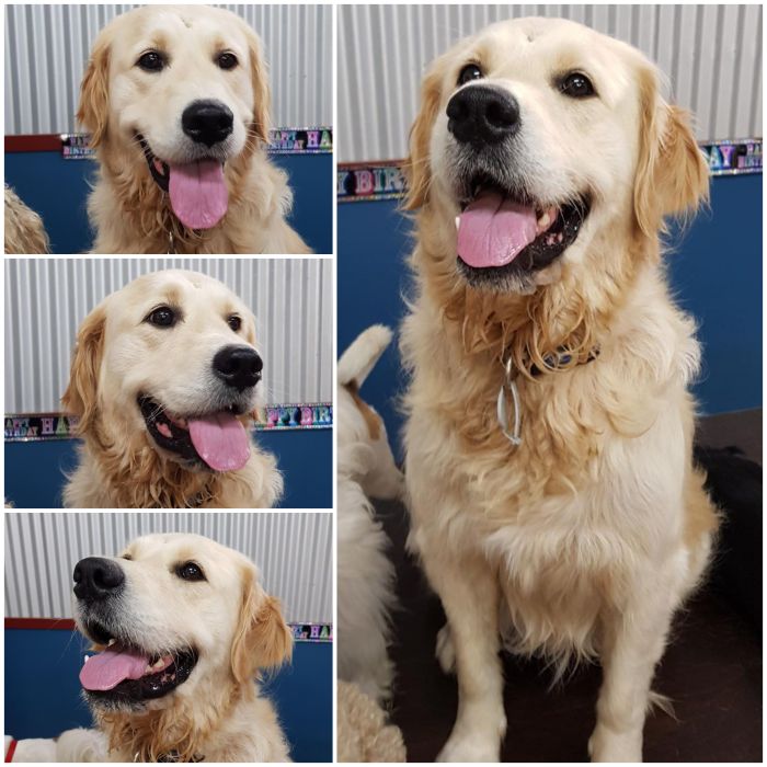 Lucy is a sweet and gentle natured Golden Retriever. Lucy likes playing tuggy and ball games, and is extra fond of cuddles. Lucy is our Laughing Dog of the Day!