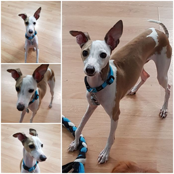 Torino is an Italian Greyhound, small in stature, but big on personality! Torino broke his leg last year, but he doesn’t let that stop him having fun! Torino is a social boy and loves playing chasey. Torino is our Laughing Dog of the Day today!