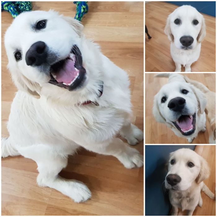 Gordon is a beautiful 5 month old Golden Retriever Puppy. Gordon is full of fun, loves to play and is a terrific playmate. Gordon is our Laughing Dog of the Day!