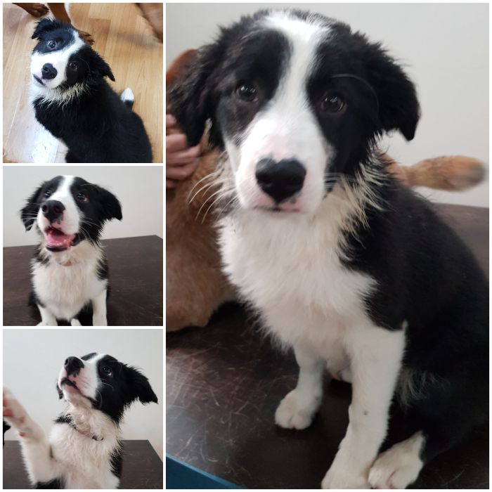 Frankie is an adorable, fun and very smart Border Collie puppy. Frankie loves playing with friends and is happy to show the humans how clever she is! Frankie is our Laughing Dog of the Day!