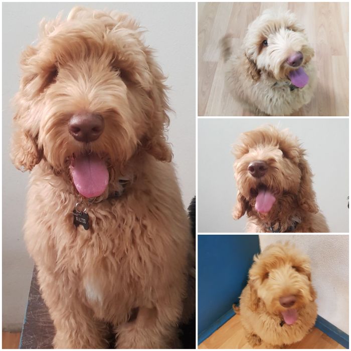 Walter is a 4 month old Standard Labradoodle Puppy. Walter loves snuggles, bouncing about and following the leader. Walter is our Laughing Dog of the Day!