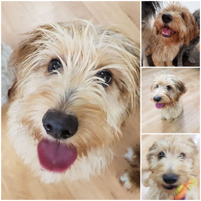 Millie is a 5 month old Labradoodle puppy. Millie loves bouncing about and enticing pups into tuggy play! Millie is our Laughing Dog of the Day!