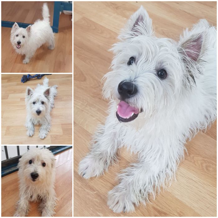 Fergus is a 5 month old West Highland Terrier Puppy. Fergus is a relaxed little chap who loves to play and make furiends. Fergus is our Laughing Dog of the Day!