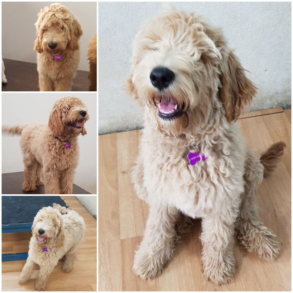 Riley is a sweet and gentle natured Groodle puppy. Riley likes to bounce about and loves a snuggle. Riley is our Laughing Dog of the Day!