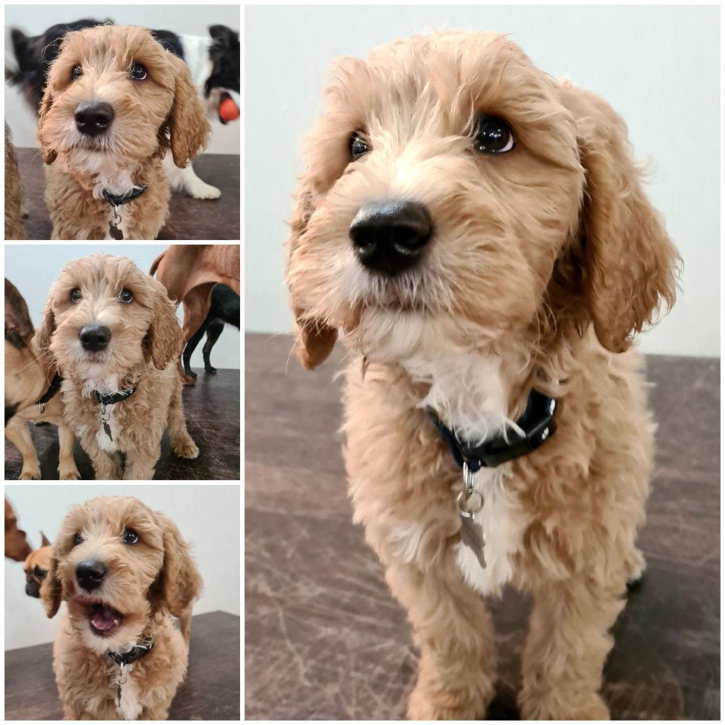 Simba is a 2.5 month old Labradoodle puppy. Simba is a very social boy and loves bouncing about playing with furiends. Simba is our Laughing Dog of the Day!