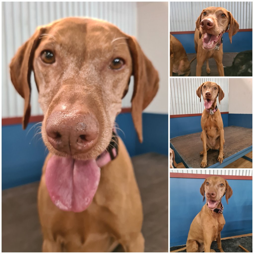 Sadi is a 6 year old Hungarian Vizsla – full of fun and energy. Sadi loves a game of ball, but is very social and loves making new furiends. Sadi has been a home stay guest with us over the New Year and has had lots of fun holidaying with Duncan and Delphi. Sadi is our Laughing Dog of the Day!