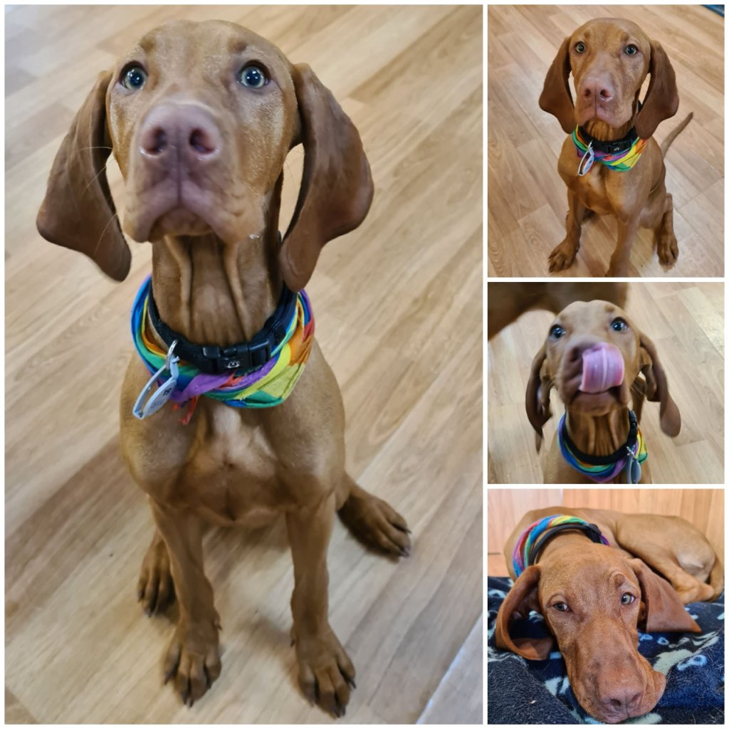 Tilda (aka Tilly), is a confident, happy and energetic 4.5 month old Hungarian Vizsla puppy. Tilly loves games of tuggy and furiendly wrestles and in typical Vizsla style will attempt to keep the fun going all day! Tilly is also Delphi’s half sister – can you see the family resemblance? Tilly is our Laughing Dog of the Day!